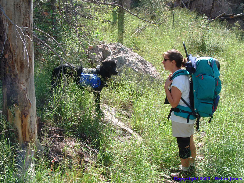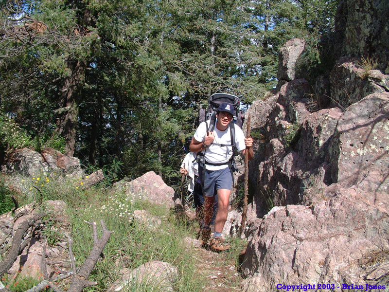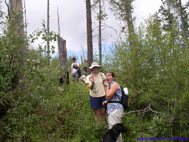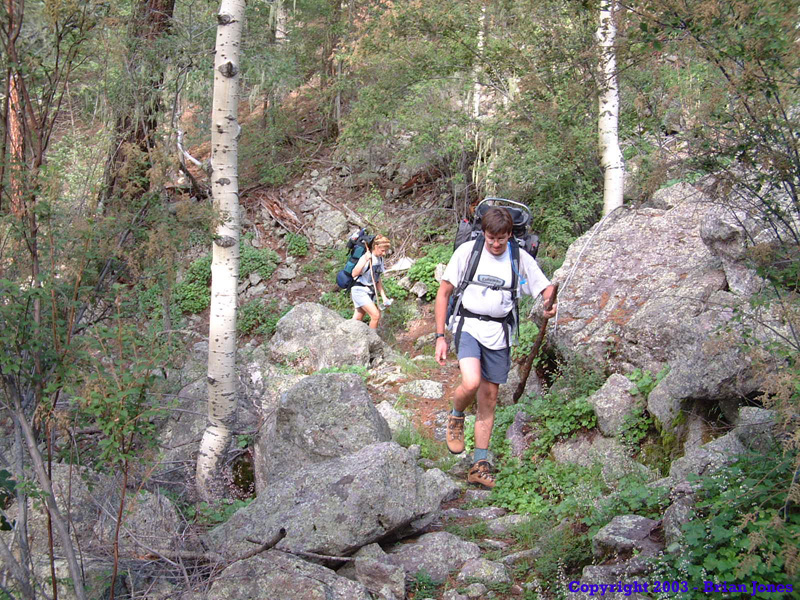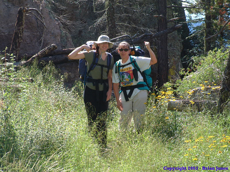 Seeing as how it was the first backpacking experience for a couple of folks in the group, it was slow going, but we kept plugging away. I played the role of sweeper, making sure no one got left behind, but in that role Shannon and Janet moved ahead out of sight. Apparently they didn't stop for lunch because we didn't catch up to them by the time the rest of us stopped for lunch. Eventually we did meet up with them . . . Walking towards us.