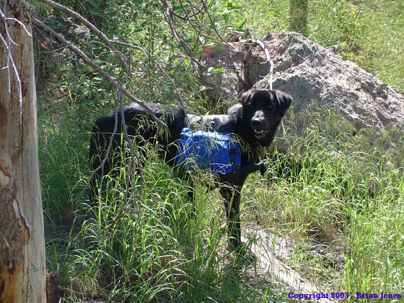 I wish I could say that we were then able to relax a bit and take it easy. I wish I could say that. Thunder rolled, clouds dropped, scattered rain drops fell, Pepper disappeared (apparently frightened by the thunder). All of us scrambled to set our tents up and get our gear inside and keep it try. It was quite a mess, but we all got our tents set up and gear inside JUST before it started to rain in earnest. As soon as Janet got her tent set up, she went out in search of Pepper. Shannon and I had some work to do inside the tent to get organized. Shan was not a happy camper. My brand new Mountain Hardware Approach tent proved to be rather cramped for two people and gear. Cramped being somewhat of an understatement. What worried me most though, was that I didn't get my ground tarp situated under the tent very well, and rain was coming off the tent, landing on the ground tarp, and rolled right under the floor of the tent, where some of it sat in a pool. I was horrified at the prospect of all of that water wicking up through the floor, getting us cold and wet. (Side note: The Mountain Hardware Approach tent may be small, but it is AWESOME!! Despite sitting in a puddle all night long, not one drop off water came up through the floor, or anywhere else for that matter.) There was nothing I could do about it at that point though, so once I got our gear arranged and Shan situated so she wasn't so distraught, I donned my rain gear and went to help Janet find Pepper. The two of us wandered around in the waning light, calling out for Pepper. He eventually turned up at Janet's heel, apparently trying to make it look as though he'd just been following her around all along. Sneaky dog!