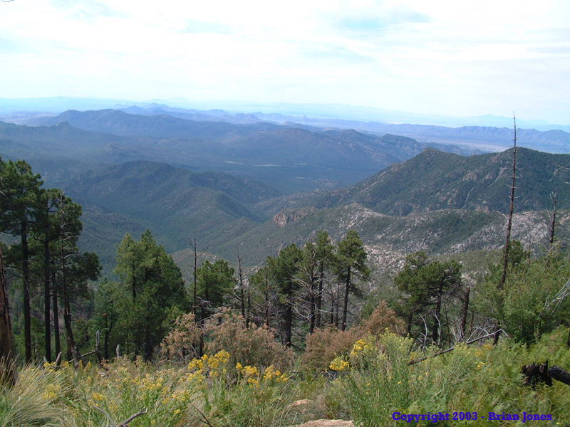 The next morning, we were up and moving in reasonable time. Our route back home took us along the Crest Trail past Chiricahua Saddle to Raspberry Junction. The wildflowers along the trail were beautiful! I was rather surprised at how many there were at that time of the year. This section of trail had many phenomenal views, some all the way down into Mexico. Portions of the trail were involved in a large fire back in the early 1990's, and it was interesting to see the recovery of the area. The following pictures are all from along the Crest Trail.