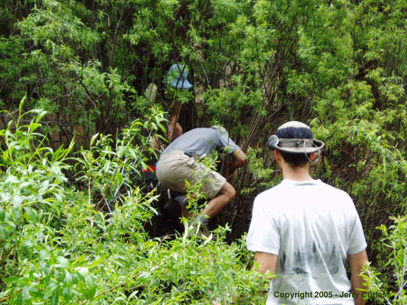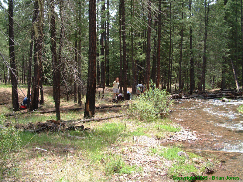 We were on the road by 7:30 (Arizona time) Saturday morning, for the hour-plus drive to Willow Creek Campground and the trailhead. On the way we passed the sleepy town of Mogollon, a former ghost town turned artist colony/tourist destination. We didn't stop, but it seems to be quite an eclectic little town. We got stuck behind some slow traffic on the dirt road after Mogollon, so it was about nine o'clock by the time we got to Willow Creek Campground (725000 E, 3698200 N Zone 12).