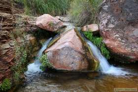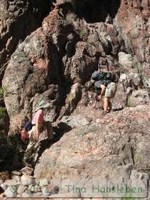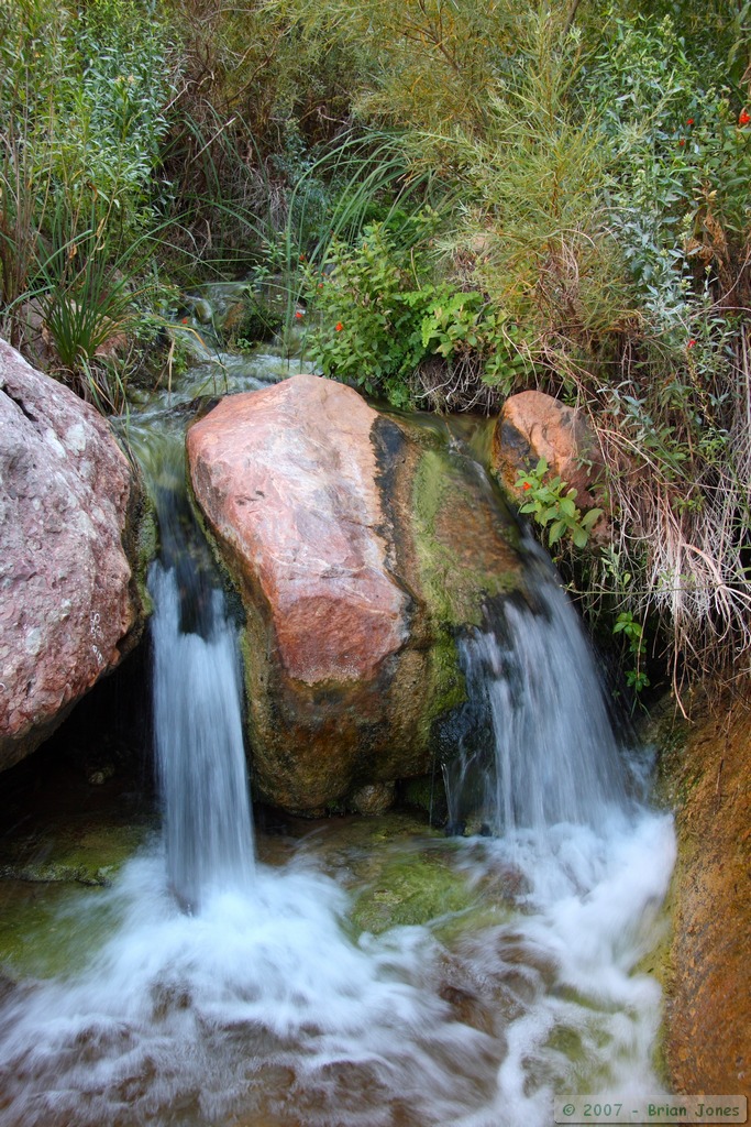 Steve, Tina and Marisa went for a swim to clean off. I puttered around camp for a little while before announcing my intention to hike up the canyon, an invitation that only Steve accepted. We moved up the canyon slowly, picking our way up the creek instead of following the path that others had made alongside the creek. As a result, we didn't make it as far upstream as we otherwise could have. It was a decision that I don't regret, although it pained me greatly when it came time for to force myself to turn around despite a massive desire to find what was 'around the bend'.