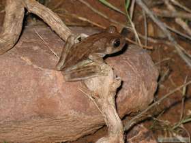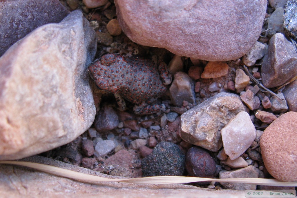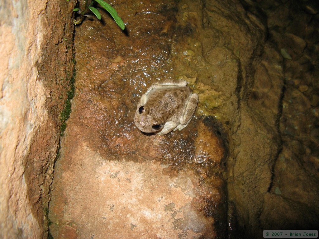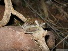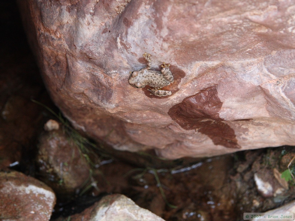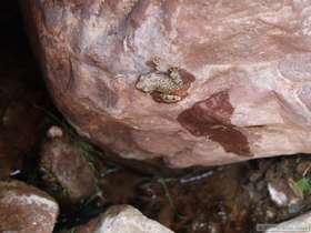 Then I found a few canyon tree frogs (Hyla arenicolor) further up the creek, and watched them for a while as well. Near one particularly sedentary frog, I decided to lay down on the bedrock along the streamside, largely just to relax and enjoy a perfect evening, but also to see if, without me watching, the frog would move. After laying around for perhaps an hour or so, my froggy friend was right where I first found him. I don't know if it is because they are "sit and wait" hunters or if he somehow sensed that I was still nearby, even if out of sight. Though still not especially tired, I decided to head back to camp and go to bed at around 11 o'clock.