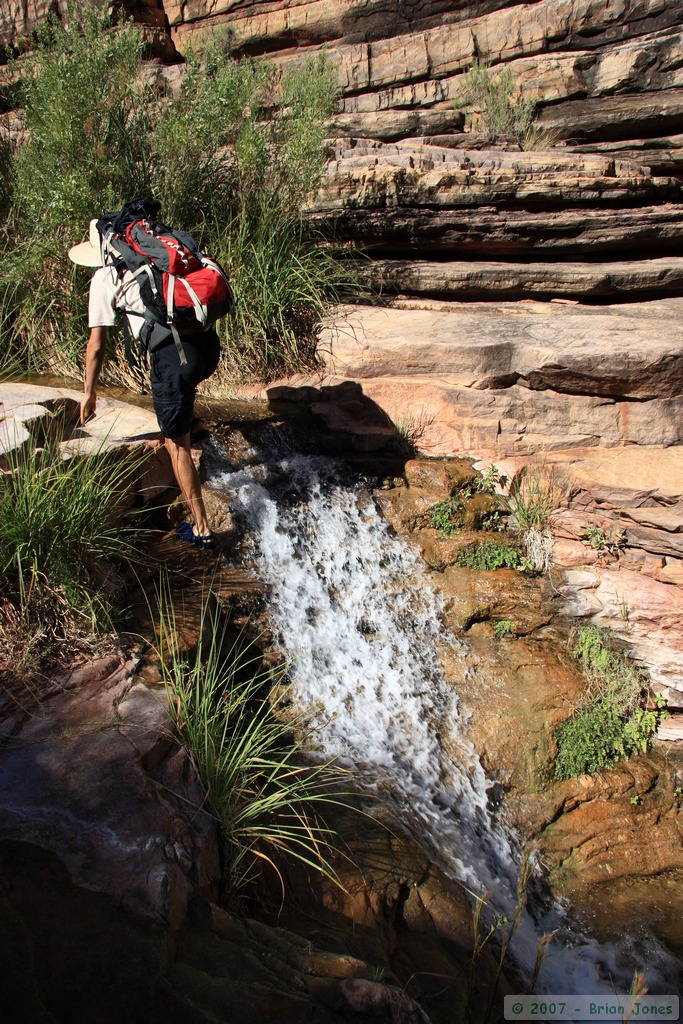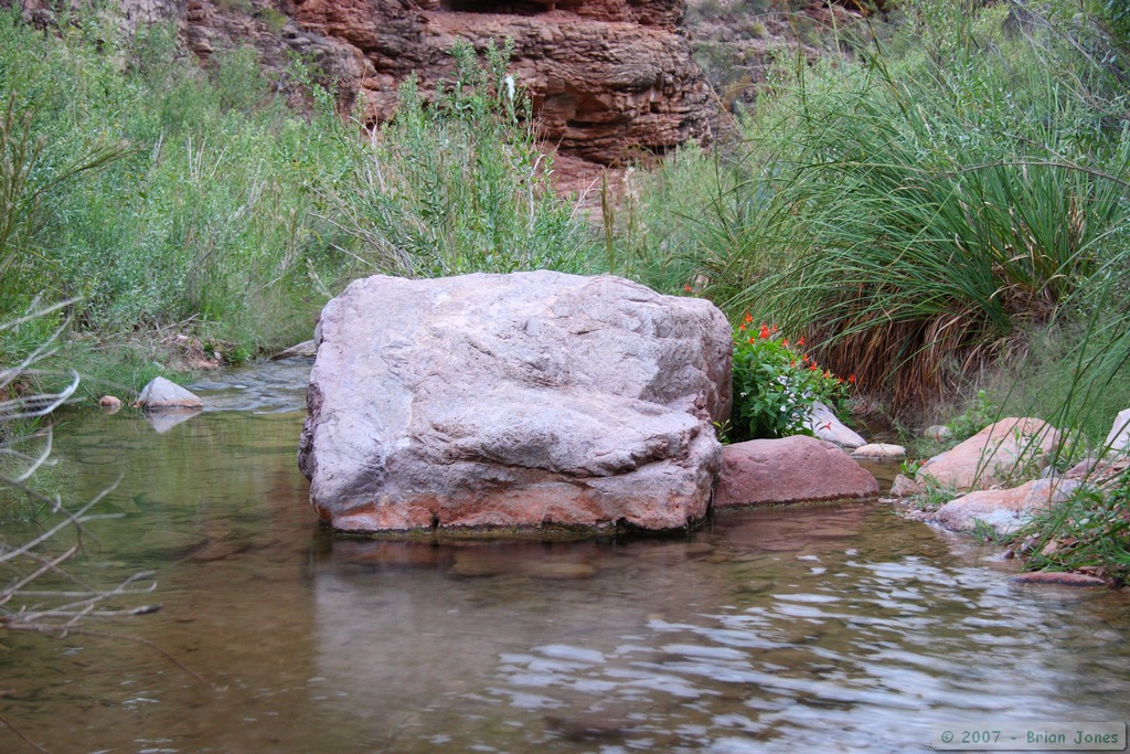 We rolled out of the tent at around 6:30, more ready to meet the day than expected considering we had a rough night of little sleep due to my stomach feeling really bad. Although I had a fair amount of exploring in mind for the day, since it was a layover day, we spent the first part of the morning in a fairly leisurely fashion. It was nine o'clock before we left camp for a hike down the creek to Hermit Rapids, some 1.5 miles away.
