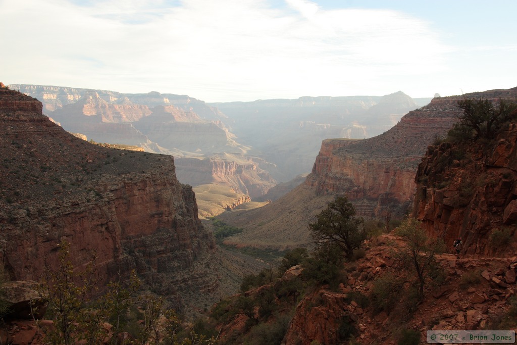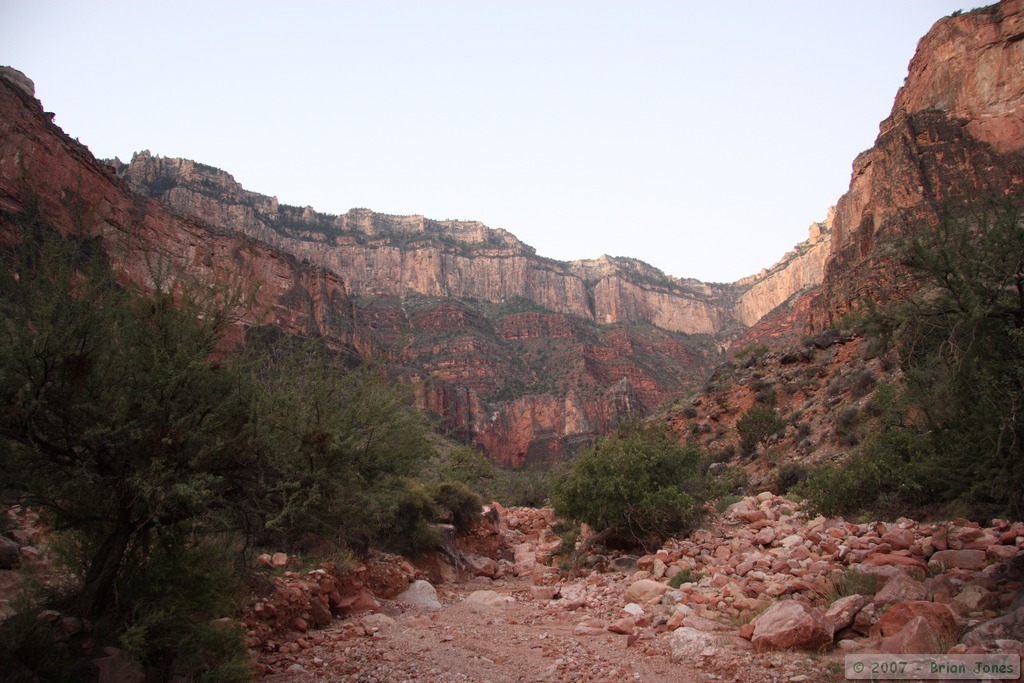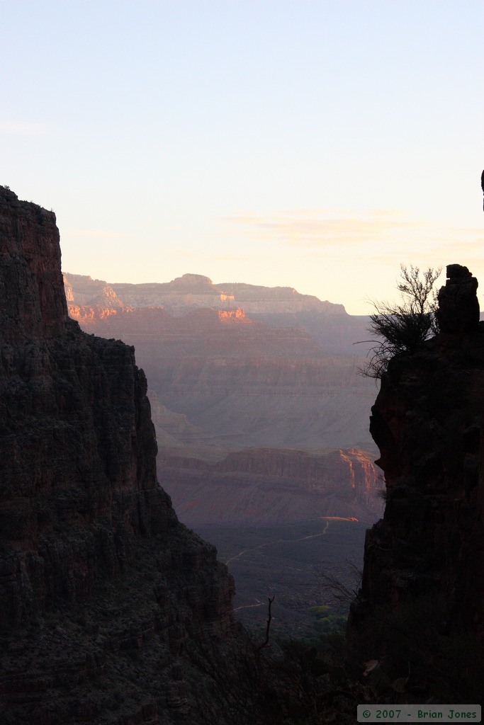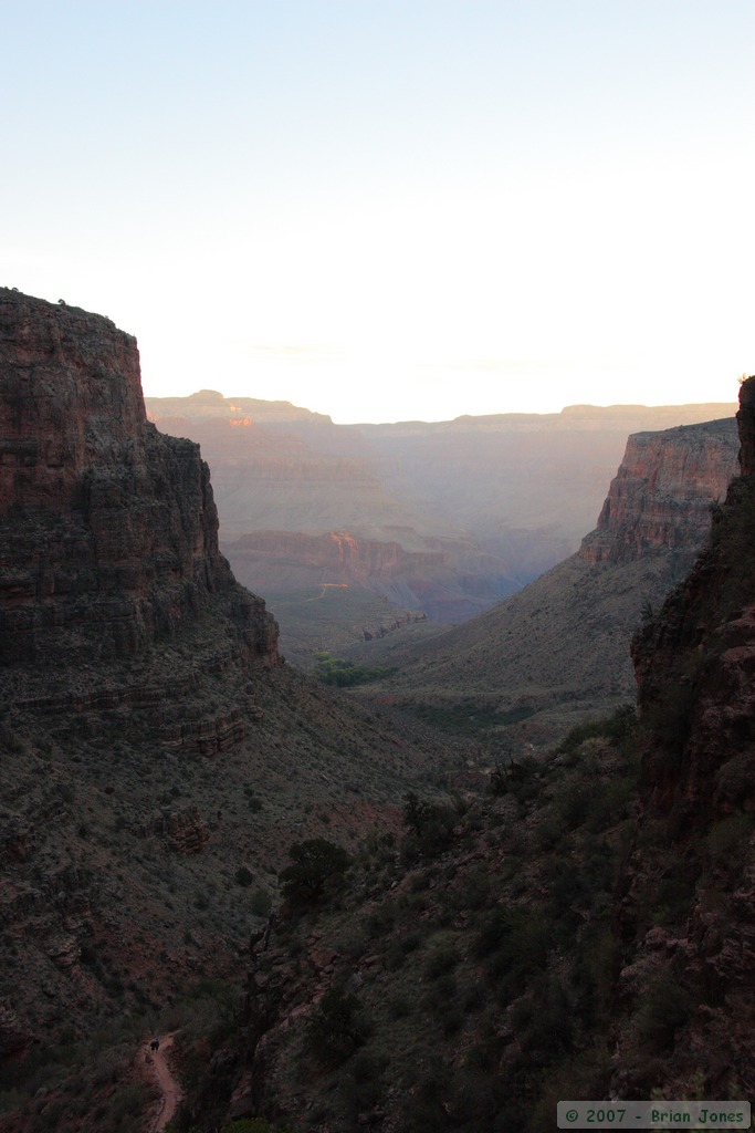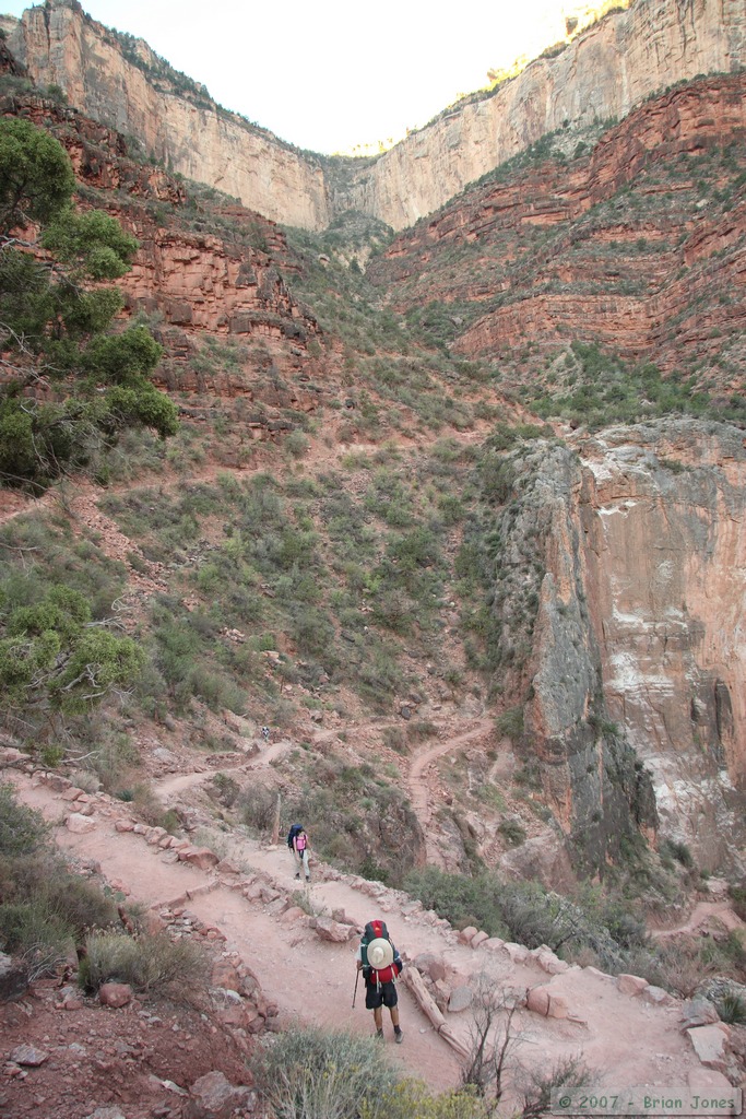 Another alarm at 4:30 a.m. I'd given the group the option to wake up a bit later since we didn't have as many miles to cover to climb out of the canyon, but the decision was unanimous to get up at oh-god-thirty and get as high as possible before the sun got a chance to get the best of us. Once again, we were hiking by six o'clock. It seemed were one of the first groups to get up and get moving, and we had the busiest trail in the park all to ourselves for quite a while. Everyone hiked out at their own pace, as there was little need to stick close together on the Bright Angel Trail. Still, the protector in me did keep me looking down to keep track of everyone to make sure everyone was progressing.