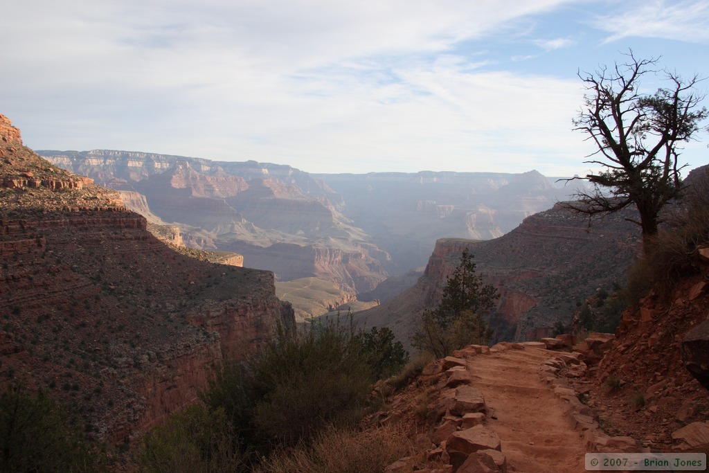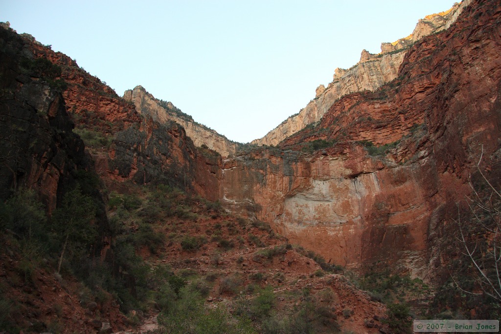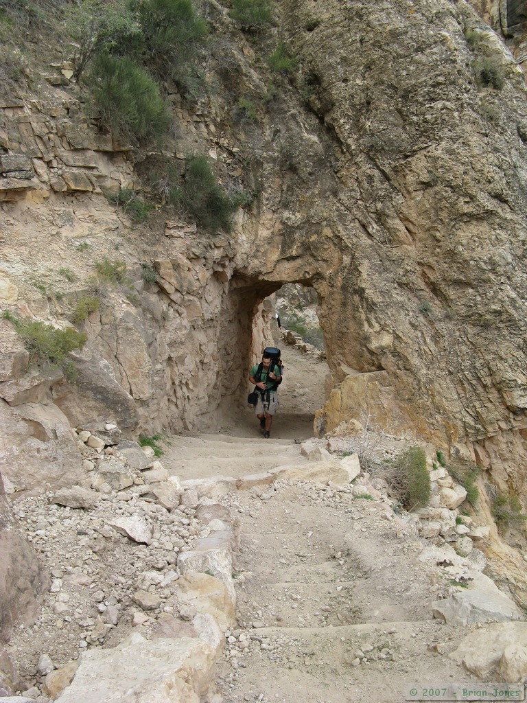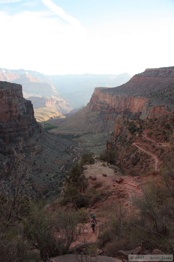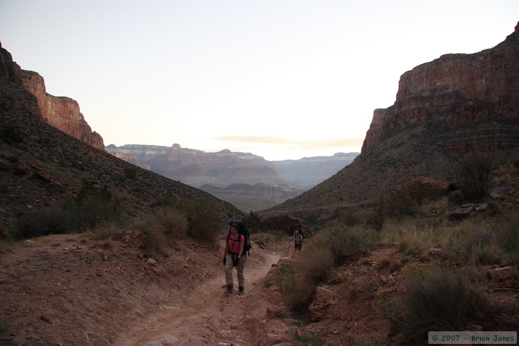 Leaving 1.5 Mile Resthouse, I decided to stick with Shan, as she indicated she could use some encouragement to get the rest of the way out of the canyon. She had been getting along superbly up to that point, as had everyone else, so it seemed a bit odd that suddenly she needed encouragement. As it turns out, Shan was running out of juice. The group moved out ahead, and Shan had to constantly stop to rest. At one stop I took off my pack and mixed up some Gookinaid Hydrolite for her. Within 15-20 minutes of drinking the Gookinaid, she was largely restored to life, though still weary of the incessant climb.