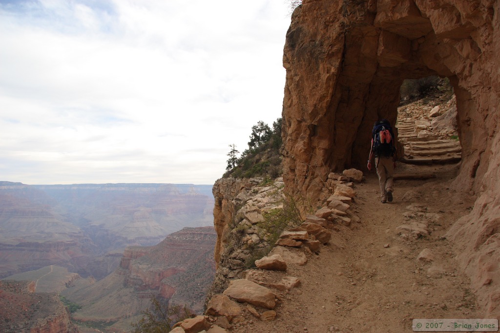 At one point, we reached a place where the trail went through a hole in the rock. I thought it was the hole in the rock that we'd seen from Kolb Studio the day before the hike, and told Shan that the top must be just ahead.