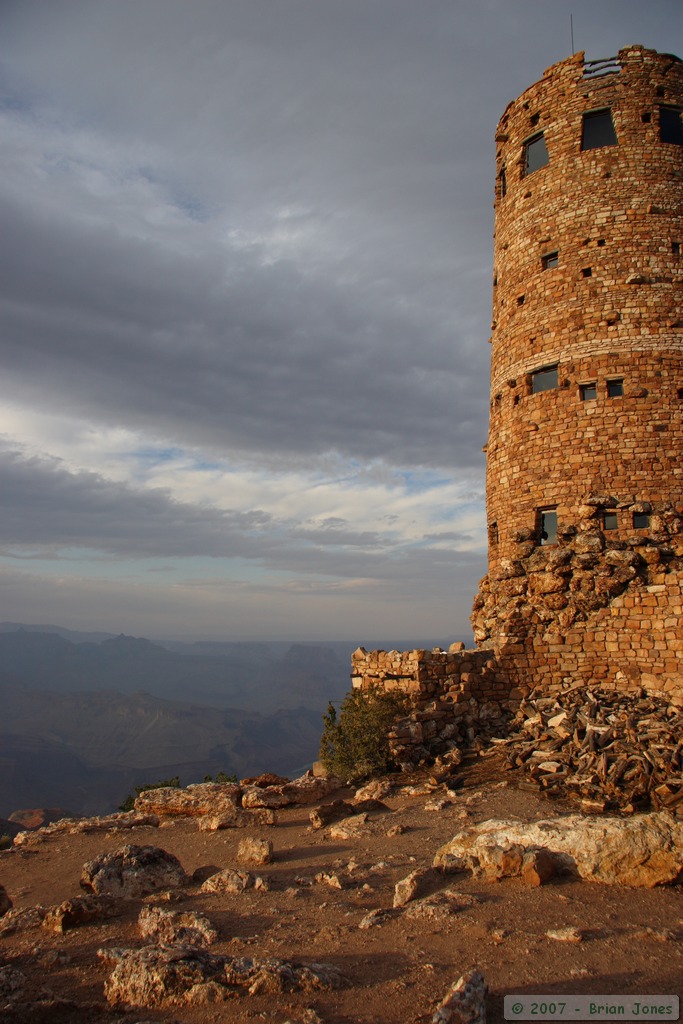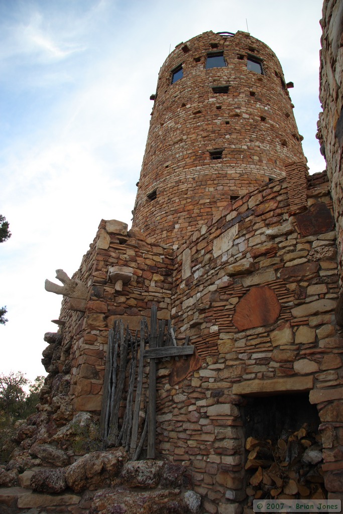 After getting cleaned up, Shan, Marisa and I left Tina to enjoy her "Death in the Canyon" book and headed out to check out The Watchtower, a magnificent historical building perched on the rim of the canyon that was designed by Mary Jane Colter about 23 miles away from Grand Canyon Village.