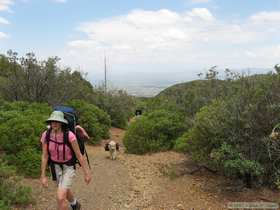 Then as we were scrambling around trying to re-pack and re-organize at the last minute, Brian D. called and said that Cherokee was limping badly and wouldn't likely be able to handle the hike, so he might have to back out. When Marisa arrived, she mentioned that she had a dog-sitter taking care of her dogs, and that Cherokee could stay with her dogs. That problem was solved, but it meant a significant delay, in that Brian had to bring Cherokee over to our place so that he could go with Marisa back to her place. It was somewhat of a mixed blessing, in that while it delayed our start time by a couple of hours, it also gave me some more time to incorporate Shannon into the trip.