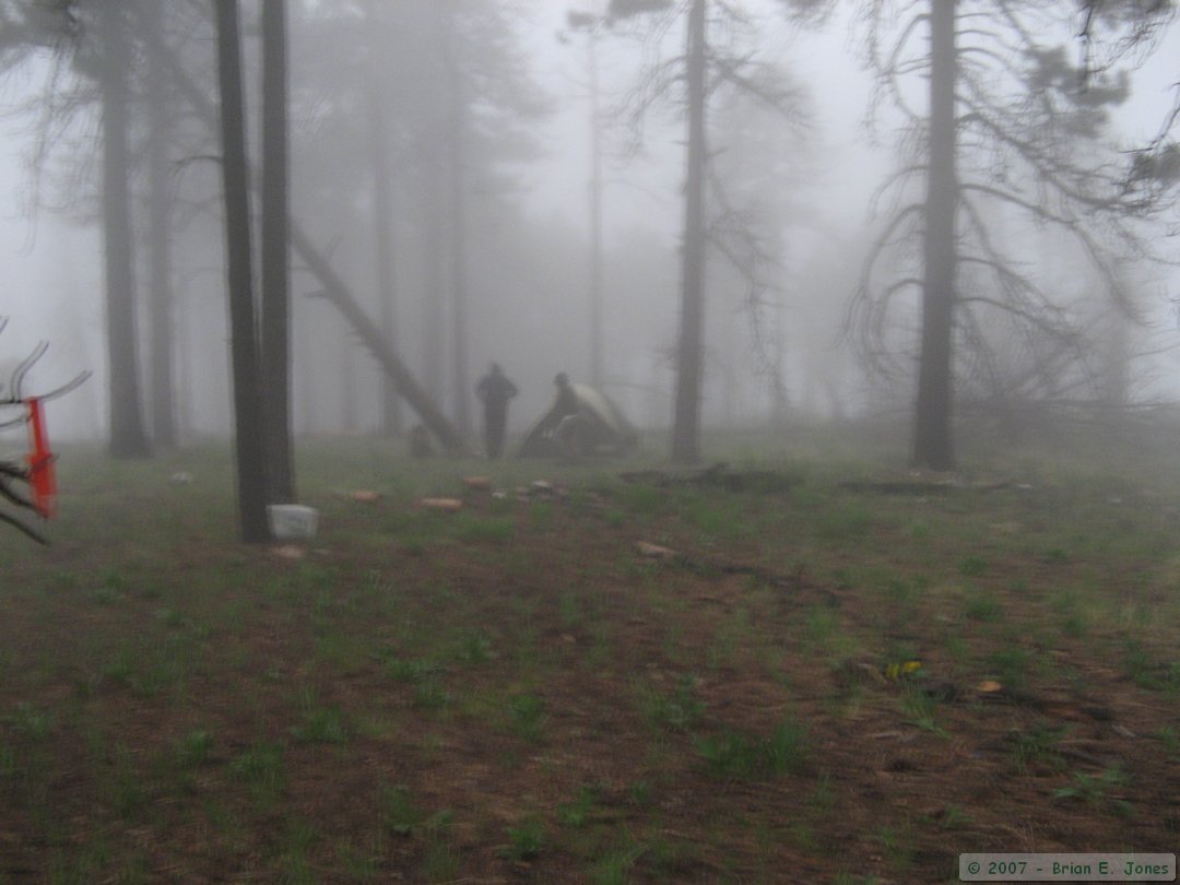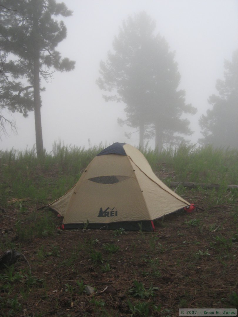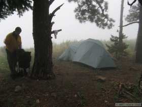 Not long after that, I began to wonder what materials I might have to make a boat, for it seemed that the valley below might actually fill up with water and drown the entire mountain! We lay in our tent during what was the most intense storm I've been in for quite a number of years. It appeared (and sounded, and felt) like we would be tent-bound until morning. The lightning was so close and intense, that once, with my eyes closed and a shirt over my eyes, not to mention two layers of tent fabric, the lightning flash was so bright that I saw stars.