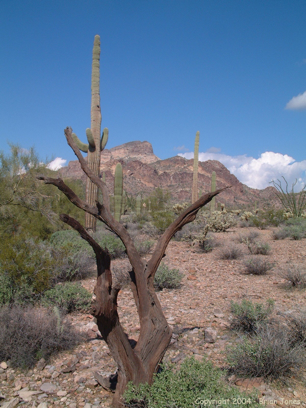 As we watched it, we noticed that it had NINE legs! As it turns out, the "ninth leg" is a pedipalp, or feeding appendage. There should be two, but apparently he lost the other one, probably in a bar brawl. Here is a really great web site (pdf format) on tarantulas! The Natural History of Tarantula Spiders by Richard C. Gallon As we continued across the valley floor, occasionally slowed by a steep-sided arroyo, we enjoyed the beautiful day and the open desert.