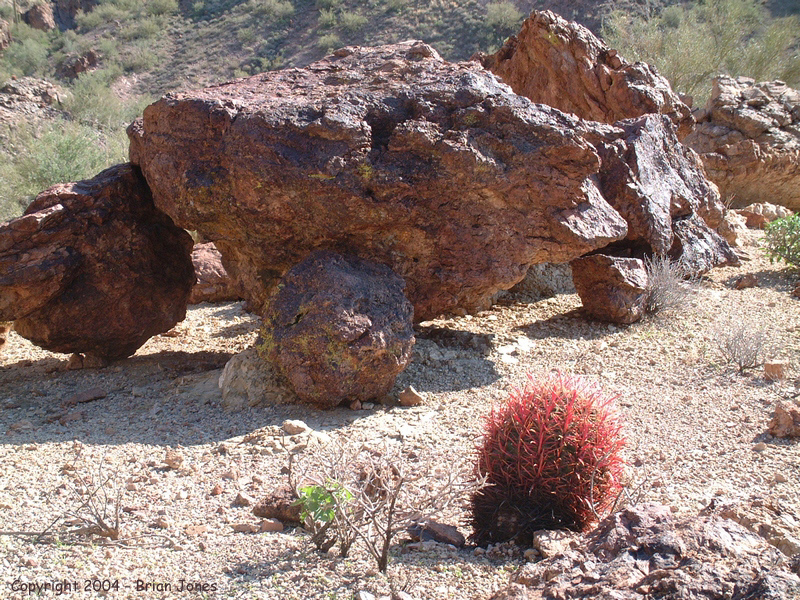 In the dark brown desert pavement