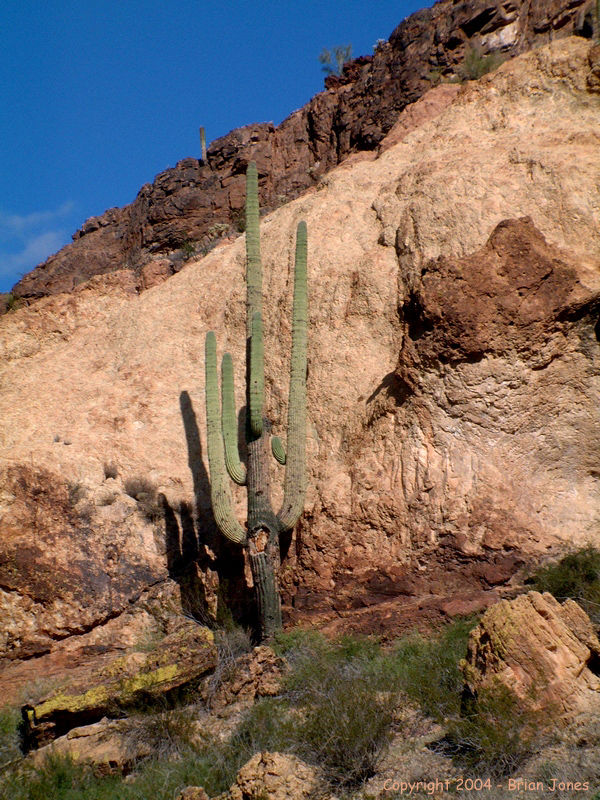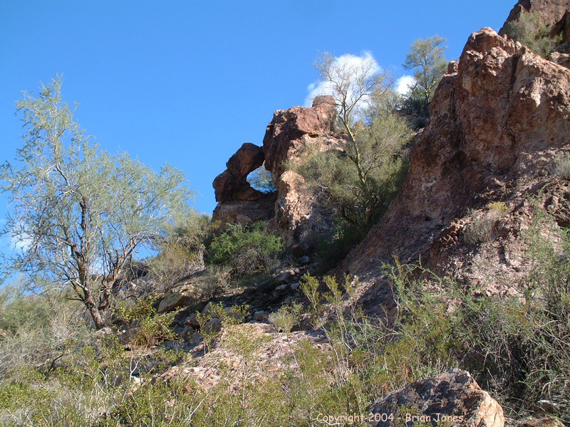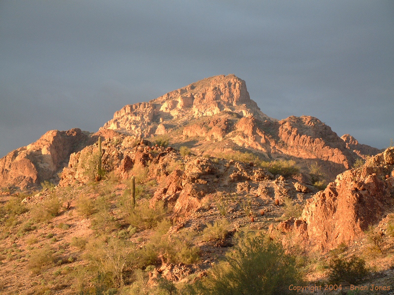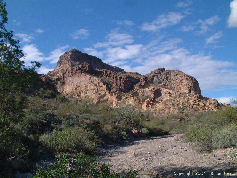 By the time we got to the wash that lead us through the saddle and around to the eastern side of the mountain it was mid-afternoon. As we approached the mountain, the peak loomed larger and larger, and an easy route to the top started looking more and more remote.