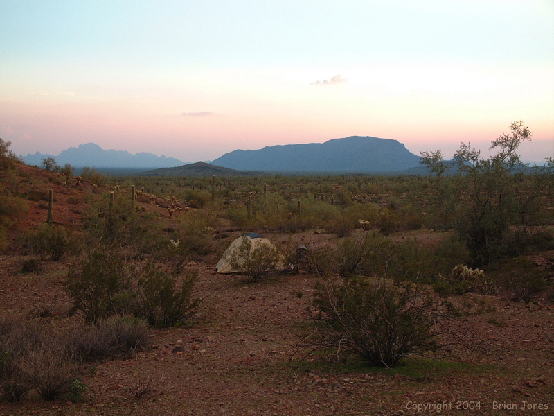 We then followed the main wash south almost all the way back to camp, where we enjoyed another beautiful evening. On the way home, Jeff spotted another animal . . . a baby tarantula that, for once, he didn't almost accidentally step on. Our afternoon adventure took us about 6.5 miles round trip.