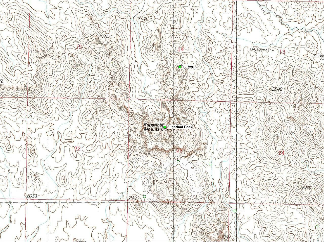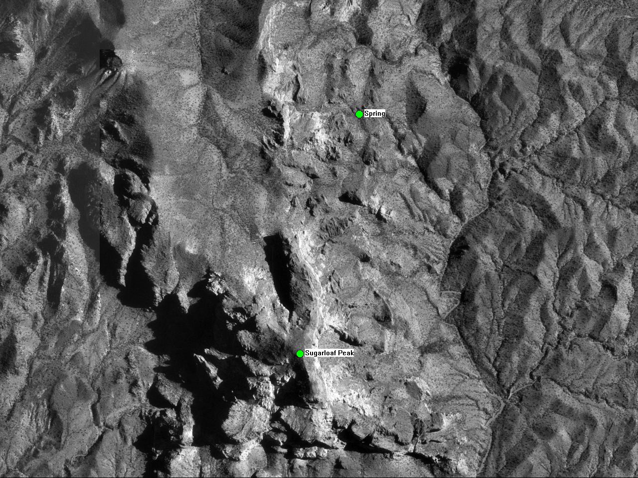 Heading down the mountain we found a flowing spring that isn't shown on the USGS quad map. It wasn't flowing very much, so I definitely wouldn't count on using it as a water source, but it might be an emergency source of water. The spring can be found at the following coordinates: 310107 E, 3729137 N, Zone 12. (Coordinates are in UTM format, using the NAD27 datum).