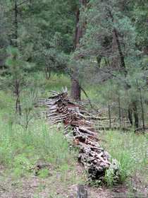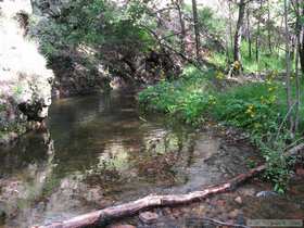 We arrived at the confluence of the south fork and north fork of the Mimbres River at around noon, almost exactly three hours after starting our hike. It's about 6 1/4 miles from the trailhead to the river fork, and I owe the three hour journey to our frequent stops, and the occasional need to figure out where the trail was. The trail, surprisingly, seemed little traveled and didn't appear to have had any maintenance recently.