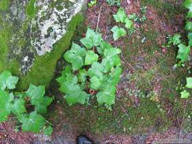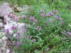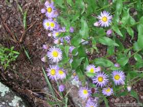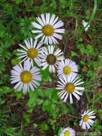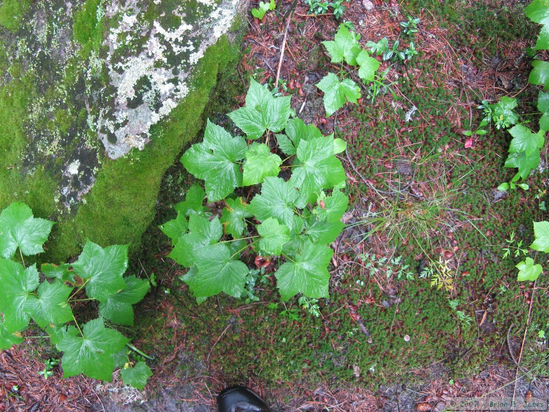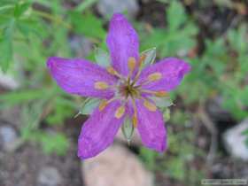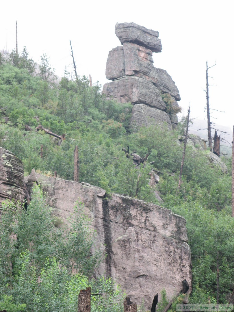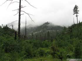 The area offered the first distant views of the trip, and even then we couldn't really see all that far. The surrounding hills were beautiful though, with ghostly rock spires standing out in the mist. We also encountered new species of wildflowers. Instead of my bird field guide, I should have brought my wildflowers field guide! Of course, I was photo-documenting the flowers for later identification. I was truly amazed by the number and variety of wildflowers on the trip. We also found a species of berry plant that I'd never heard of before, thimbleberry. It's sort of a cross between a strawberry and a raspberry, though at least the thimbleberries we found didn't taste as good as either one.