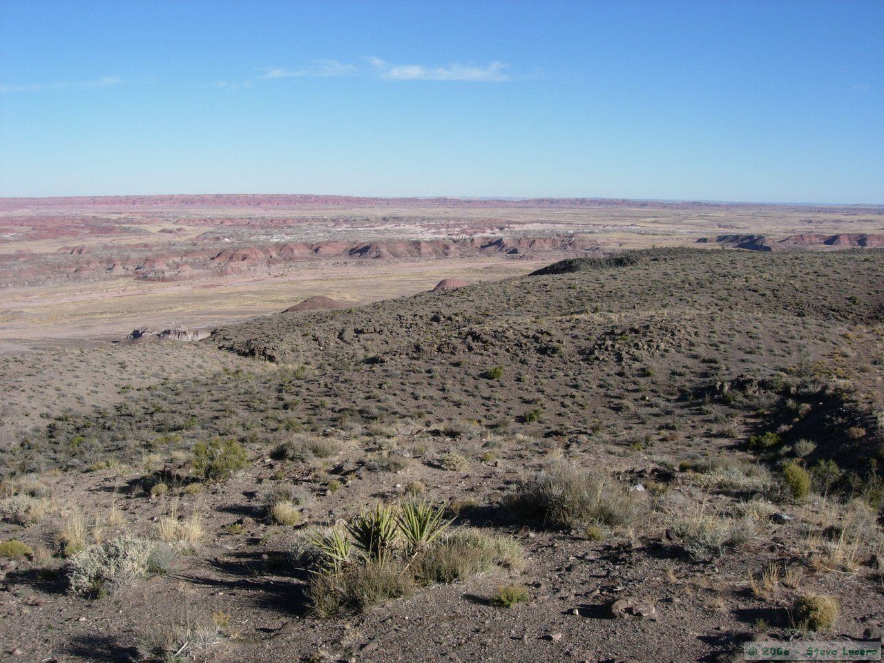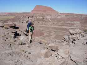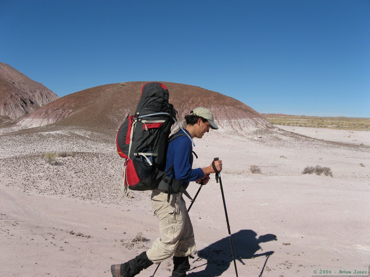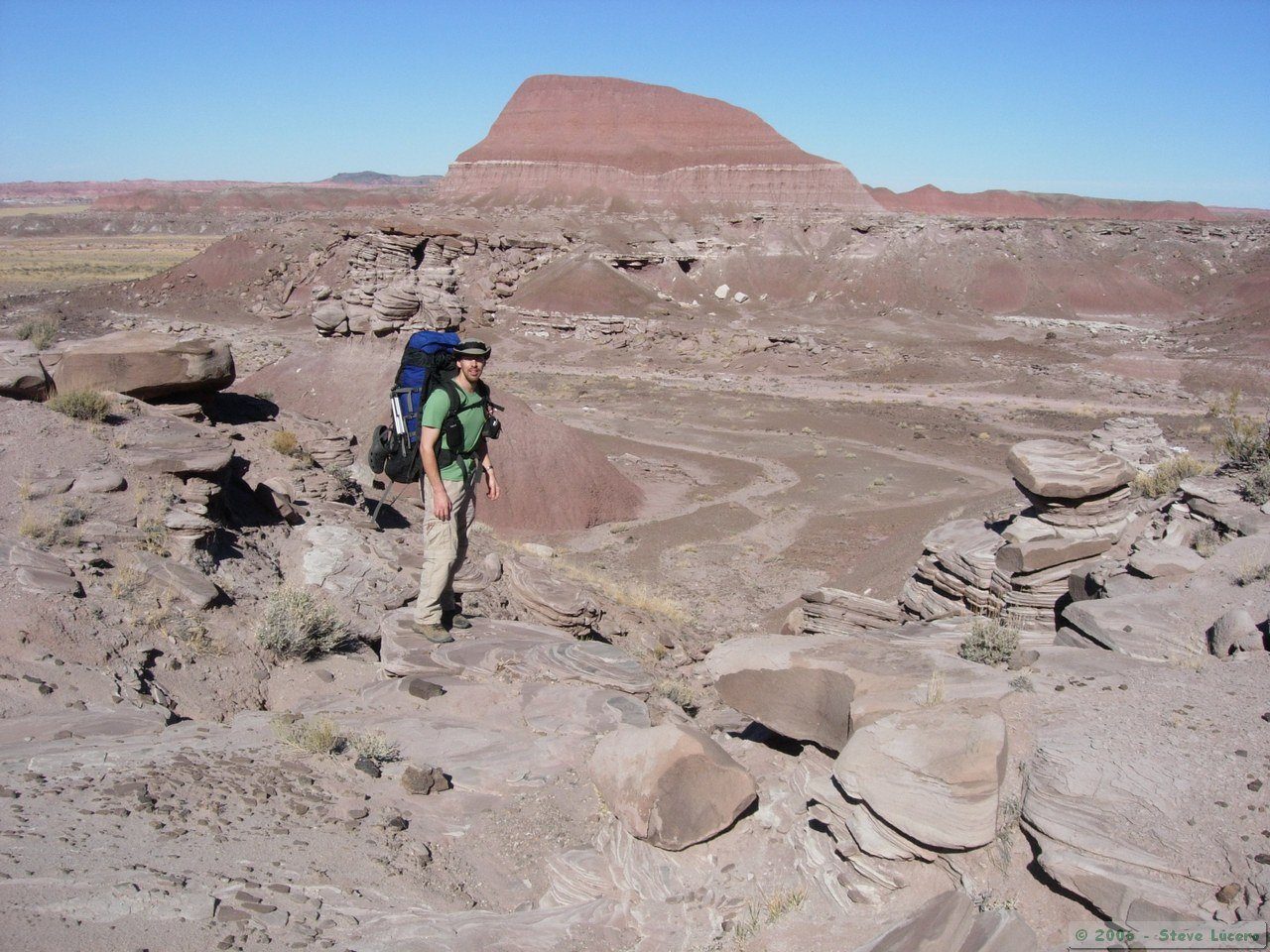 Steve, a friend from New Mexico, and I decided a couple of months prior to plan a backpacking trip for the 3-day Veterans Day holiday. After weighing a few options, we opted for a trip into the Painted Desert Wilderness Area, within Petrified Forest National Park. The Painted Desert Wilderness occupies some 43,020 acres within the northern part of the larger National Park, and is bounded elsewhere by the Dinetah, or the land of the Dine, more commonly known as the Navajo Indian Reservation. While it may seem a bit odd for two people who prefer warm weather camping to chose northern Arizona in November for a trip, there is one key factor galvanizing our resolve to shrug off the cold: water. For all intents and purposes, there isn't any in the wilderness, meaning we would have to carry all the water we would need for drinking and cooking for three days. In cooler weather, we wouldn't need as much water to stay hydrated. So while we could have chosen a slightly more pleasant time of year to go to the Painted Desert, we knew that November would be a good compromise between weather and water.
