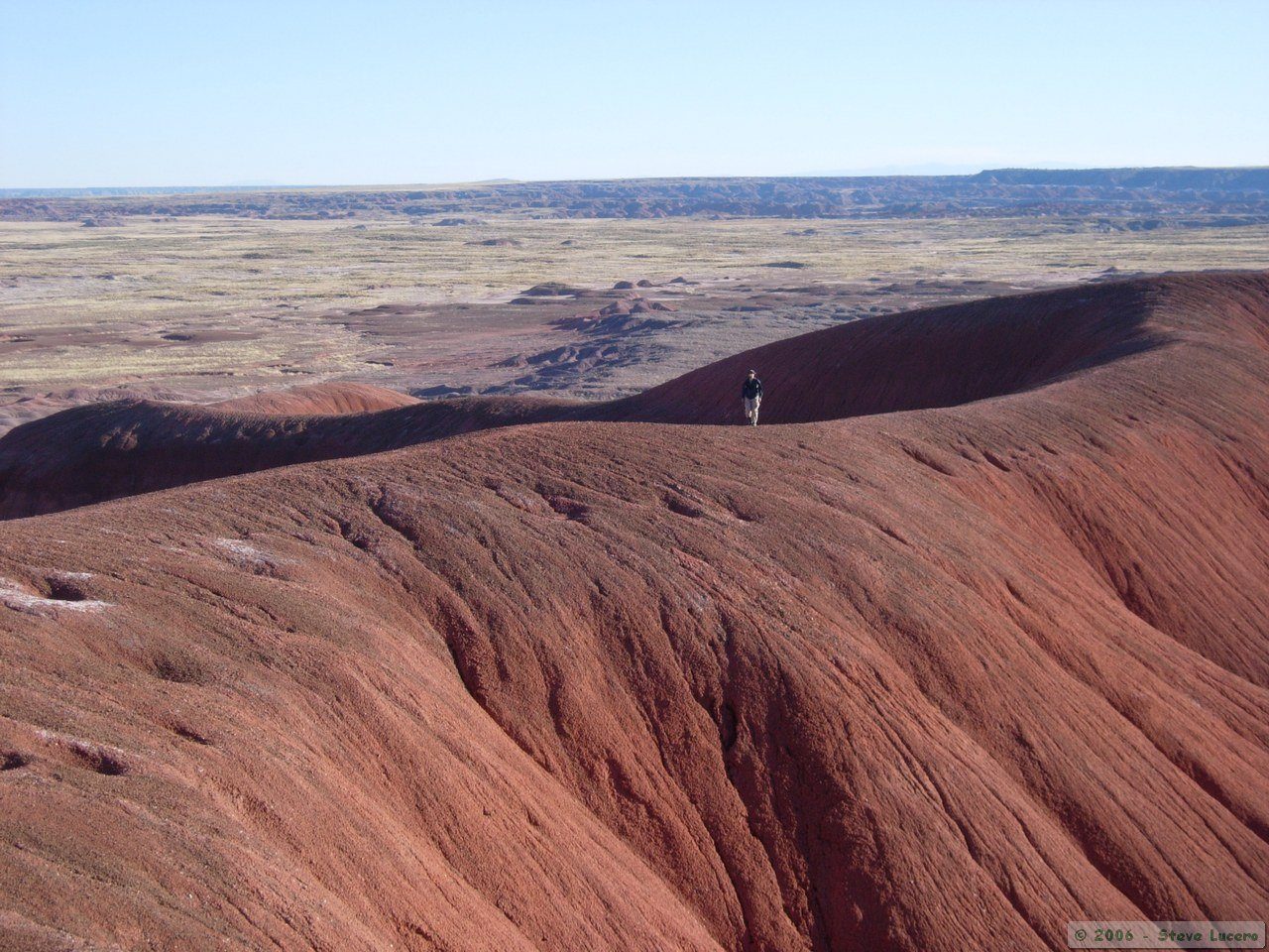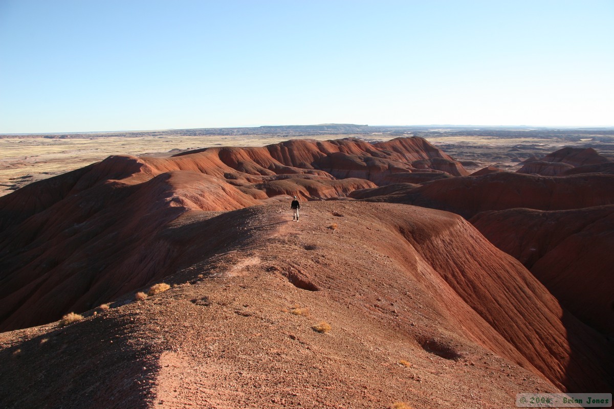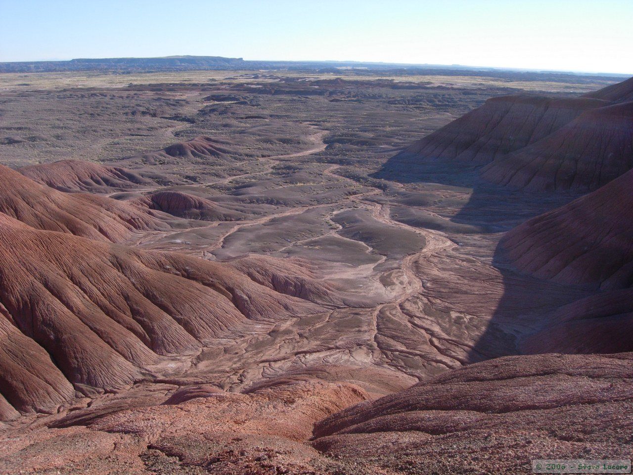 Steve, a friend from New Mexico, and I decided a couple of months prior to plan a backpacking trip for the 3-day Veterans Day holiday. After weighing a few options, we opted for a trip into the Painted Desert Wilderness Area, within Petrified Forest National Park. The Painted Desert Wilderness occupies some 43,020 acres within the northern part of the larger National Park, and is bounded elsewhere by the Dinetah, or the land of the Dine, more commonly known as the Navajo Indian Reservation. While it may seem a bit odd for two people who prefer warm weather camping to chose northern Arizona in November for a trip, there is one key factor galvanizing our resolve to shrug off the cold: water. For all intents and purposes, there isn't any in the wilderness, meaning we would have to carry all the water we would need for drinking and cooking for three days. In cooler weather, we wouldn't need as much water to stay hydrated. So while we could have chosen a slightly more pleasant time of year to go to the Painted Desert, we knew that November would be a good compromise between weather and water.