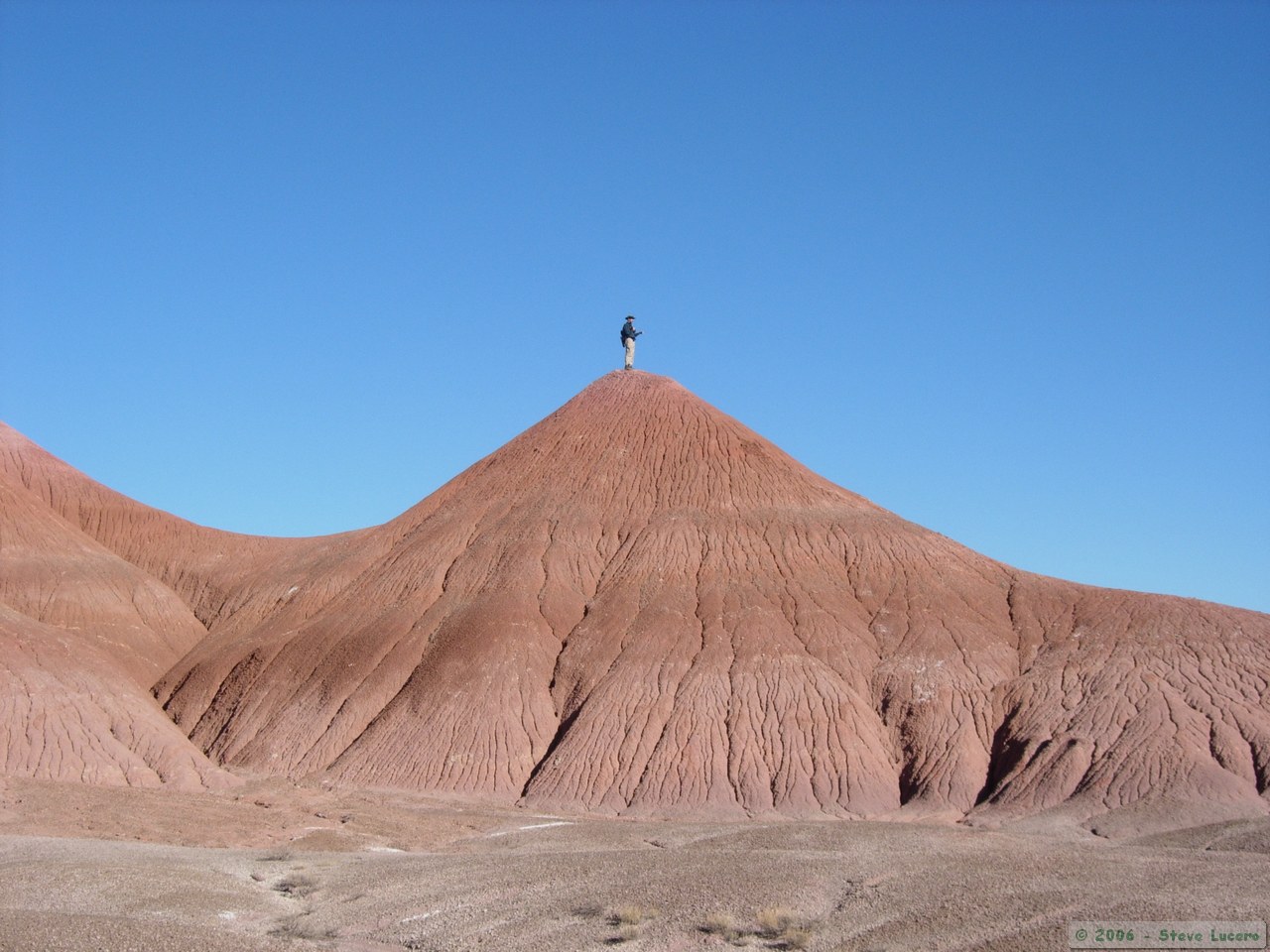 A fall would not likely have been deadly, but it certainly would have been unpleasant. Steve discovered that the erosion rills could be used to excellent effect in climbing the steep slopes, which I would estimate easily exceeded 45 degrees.