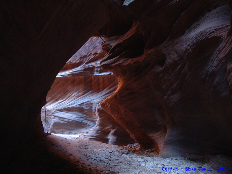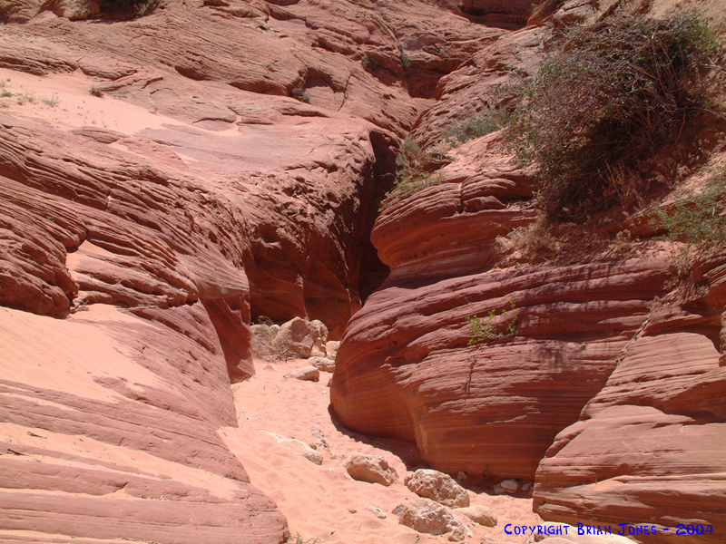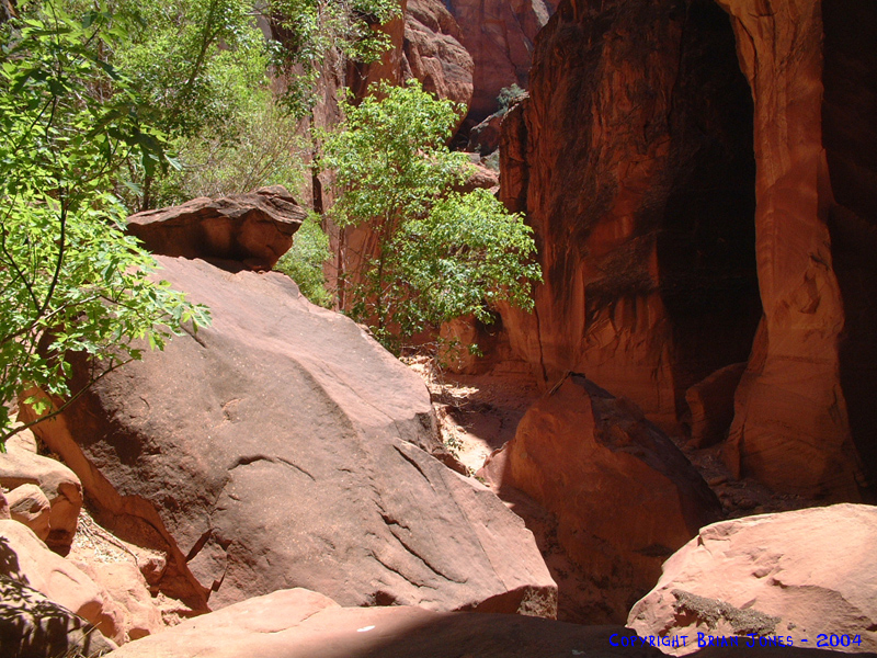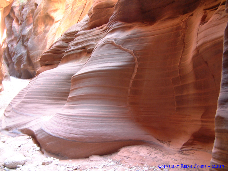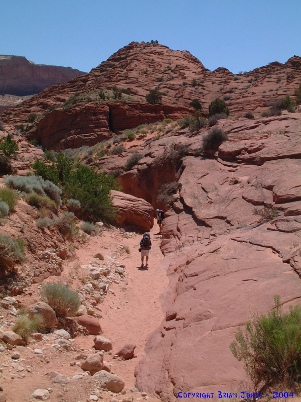 Jeff and I, in the back of our minds, had one looming fear though. A rockslide we had encountered earlier didn't quite match the description of the major rockslide described in the guide book we had read to prepare for the hike. We simply had to have passed it already though . . . Based on the time and our estimated average speed, we figured we were within a half mile of the confluence of the Paria River.