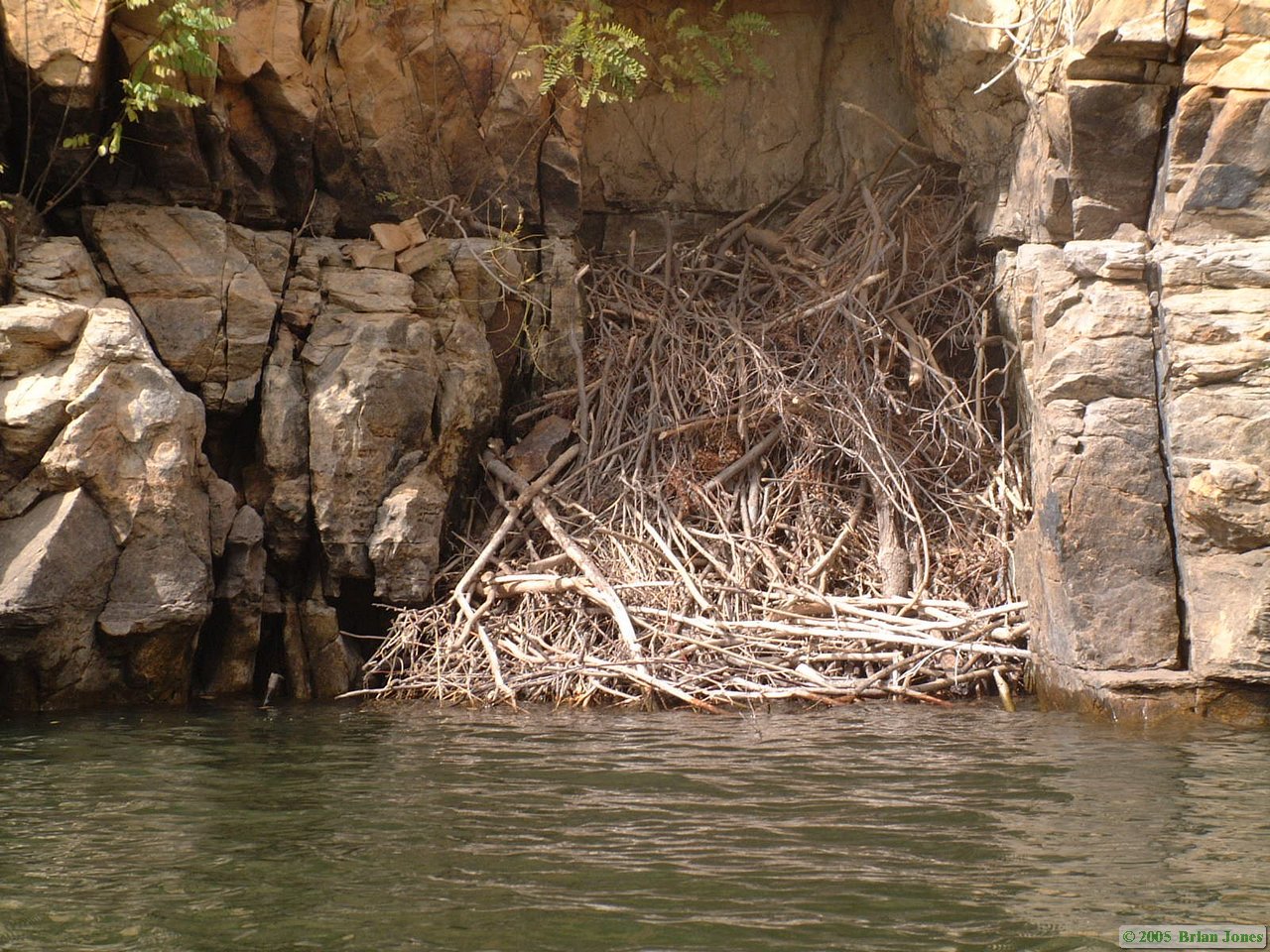 I first paddled over to a cliff on the west side of the lake where I saw two Pied bill grebes. There I also saw a large mass of large twigs curiously packed into a small recess in the cliff, extending above and below the water surface. It looked suspiciously like a beaver den, but I didn't think there were any beavers in the area, so didn't quite know what to make of it.