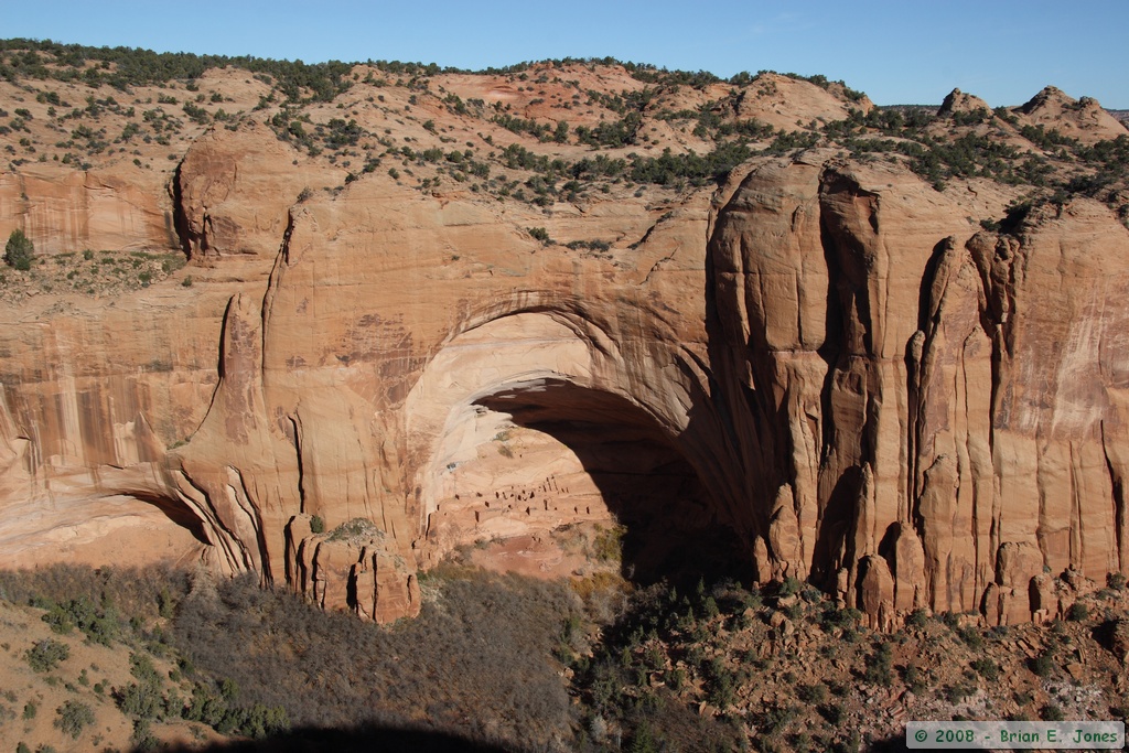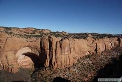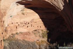 Our first detour was to Navajo National Monument. We took the short hike to the overview of Betatakin (BetAHtakin), a well preserved Hisatsinom cliff dwelling. Just outside the north entrance to the visitors center was a small patch of snow, so I lobbed a couple at Marisa, making her run ahead of us. As we looked down upon Betatakin with our binos we were all amazed at its condition. A number of buildings were so well preserved that we half expected to see some of the Hopi's ancestors walk out of them.