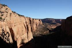 It was really quite shocking. We hunted for the petroglyphs and pictographs reportedly found there, and eventually found a couple of pictographs. We then returned toward the visitors center and detoured down the Aspen trail, which looks down the canyon.