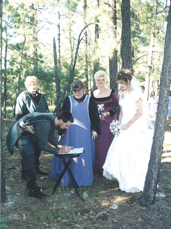 I hope this page will help give those who were unable to attend our wedding some sense of being there and fond memories to those who were able to attend. I also hope that it is of some use to others who are considering a Medieval wedding. I highly recommend it! In my opinion, it is a romantic theme and it makes the day more memorable.